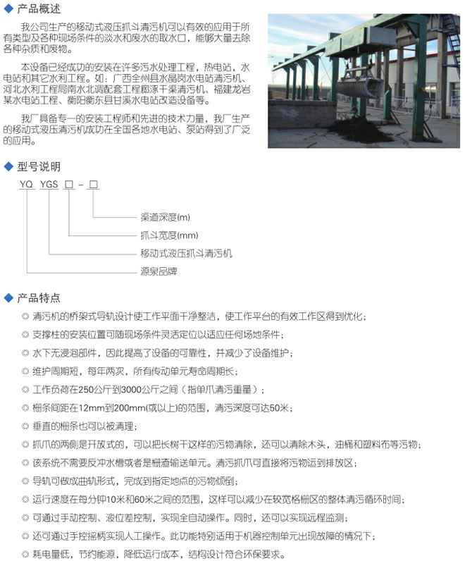YGS型移动式液压抓斗清污机